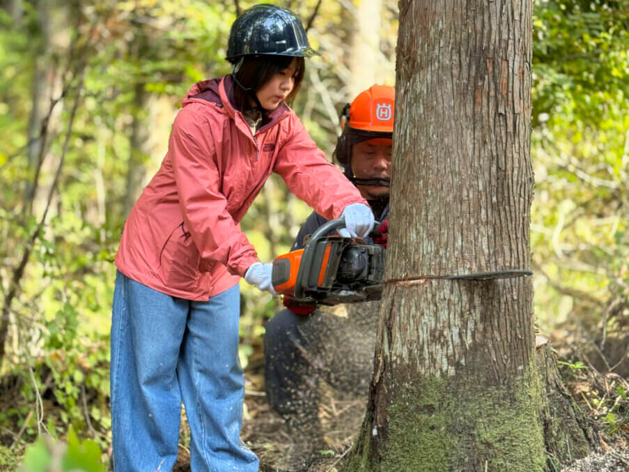 実際に施主と南三陸町の山地を訪れ、住宅に使用する木材を施主自ら伐採します。伐採式は自宅への愛着を深めるだけでなく、山や林業、地域材を使う意義を知り、SDGsや地域経済の課題を自分ごととして捉えていただくきっかけとなり、家づくりの本質に近づくことができると考えています。