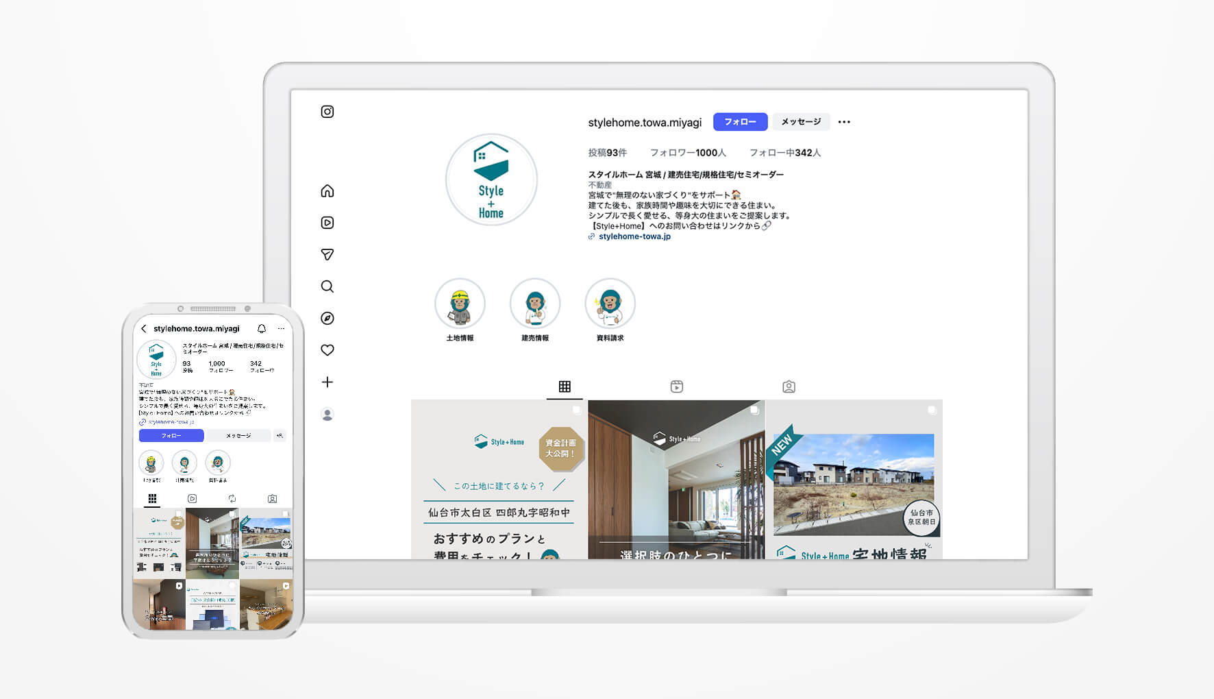 宮城県最大規模の工務店による新ブランドです。企画、ブランドネーム、ロゴ、webサイト、パンフレット制作、インスタ運用を、開日ホールディングスが担当。シンプルなデザインによって、コストを抑えた住宅ブランドを確立しました。